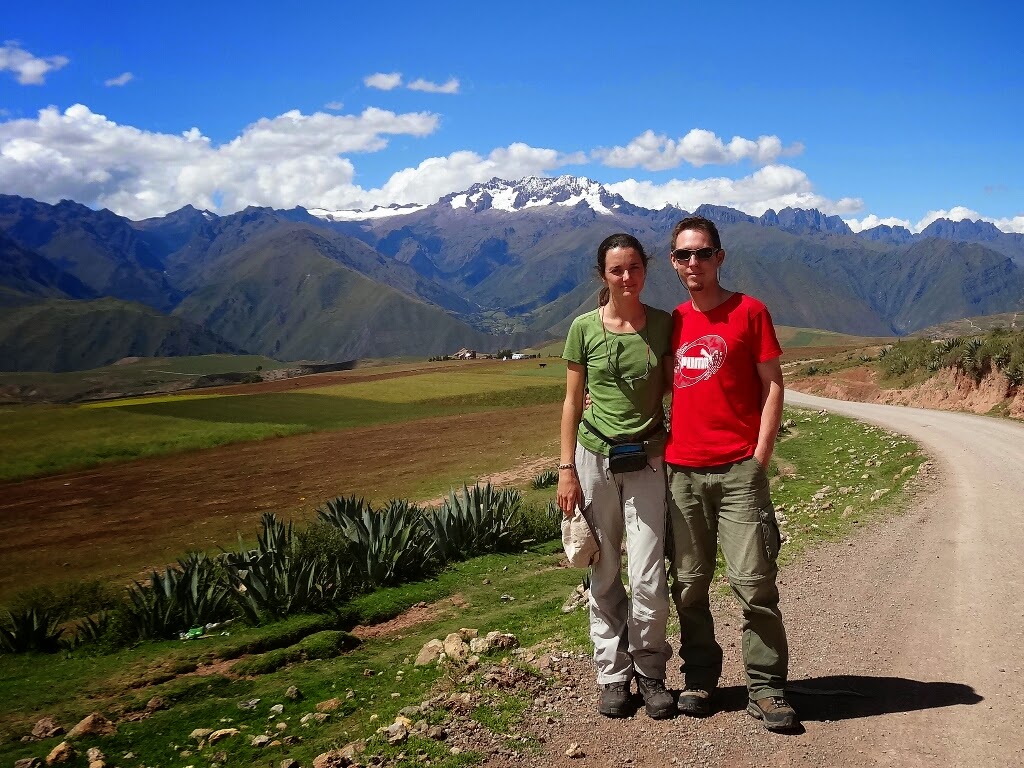 Le 29 mars nous prenons un bus pour la ville d'Urubamba, toujours dans la vallée sacrée. De là nous négocions un tour avec un taxi pour aller aux salines de Maras et à Moroy à une vingtaine de kilomètres d'Urubamba car ils n'y a pas de transports publiques. Le gars est sympa et s'improvise même guide touristique. Depuis le plateau, nous avons une belle vue sur de hauts sommets enneigés comme le Chicon qui culmine à plus de 5200m.