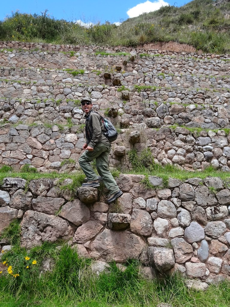 Le lendemain nous grimpons sur la montagne en face de la forteresse où se trouvent également des ruines incas mais gratuites d'accès, il y a juste la petite grimpette bien raide de 300 ou 400m.