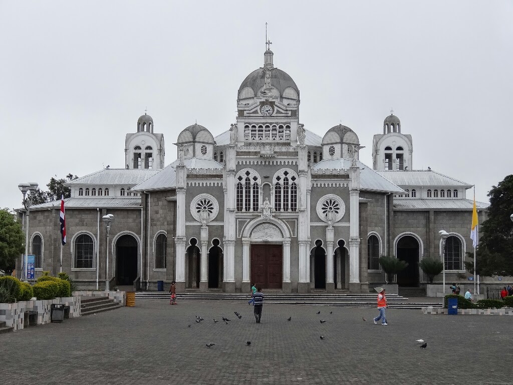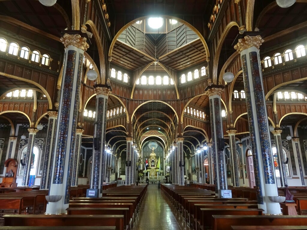 Il n'y a pas grand chose à voir dans cette ville à part la basilique qui est le monument le plus sacré du Costa-Rica. Là encore l'adresse indiqué dans le Lonely Planet est fausse. On demande notre route à des policiers qui nous escortent jusqu'à la place centrale en faisant les guides, on se sent un peu observé par les passants qui se demandent ce que l'on fait avec quatre policiers. Nous trouvons enfin la basilique. Elle est plutôt jolie de loin, de près c'est un bâtiment en béton pas très beau. A l'intérieur, c'est bien mieux surtout les boiseries aux mûrs et au plafond.