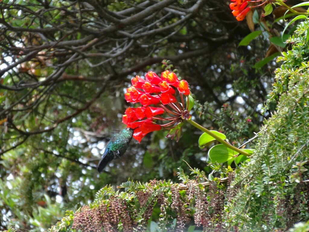 Au bout d'une heure de marche on atteint un lodge. Le cadre est vraiment super, entouré d'une belle forêt, il y a plein de colibris, on décide d'y passer la nuit.