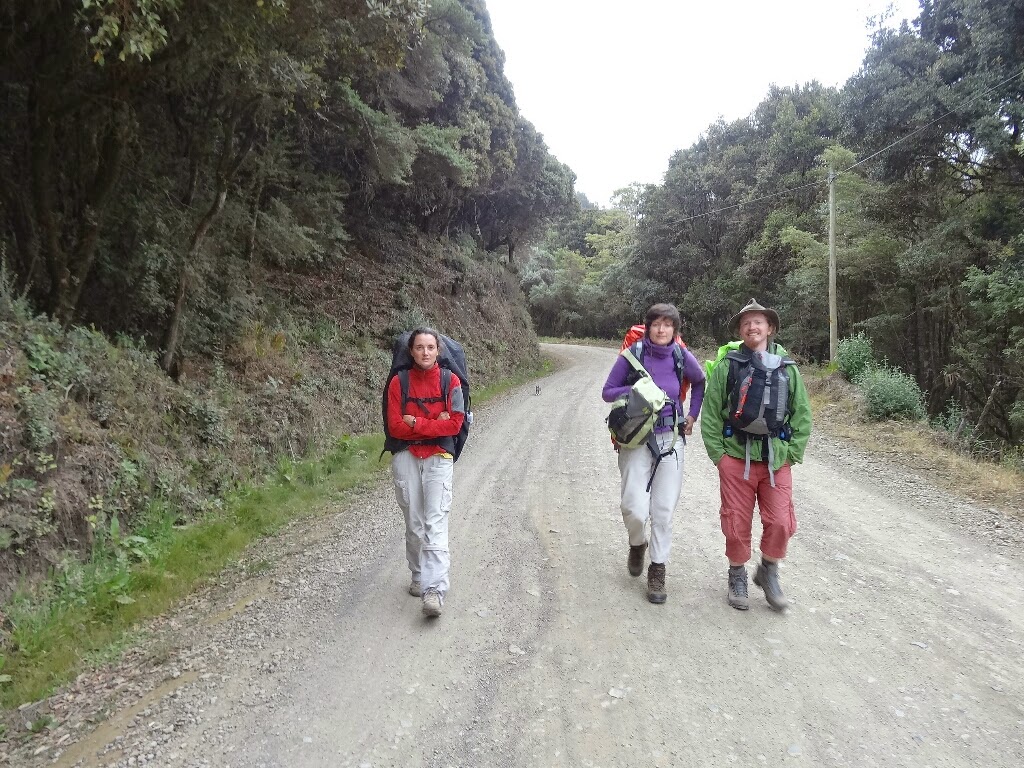 A 16h30, après quatre heures de bus, nous arrivons à destination : un croisement sur l'interaméricaine (route qui traverse le pays et relie les deux Amériques) qui mène à San Gerardo de Dotas dans la cordillère de Talamanca. Nous partons à pieds en espérant qu'une voiture voudra bien nous prendre en stop, il y a 8km à faire et la nuit tombe à 18h. Mais la plupart des voitures remontent de la vallée.