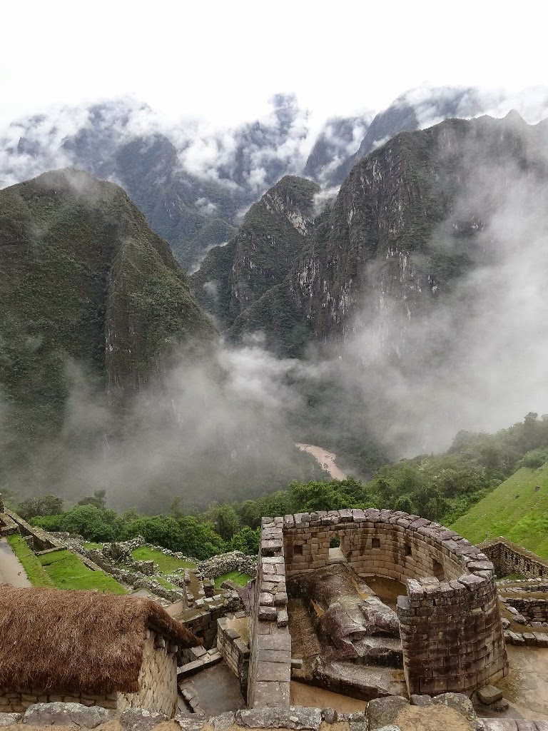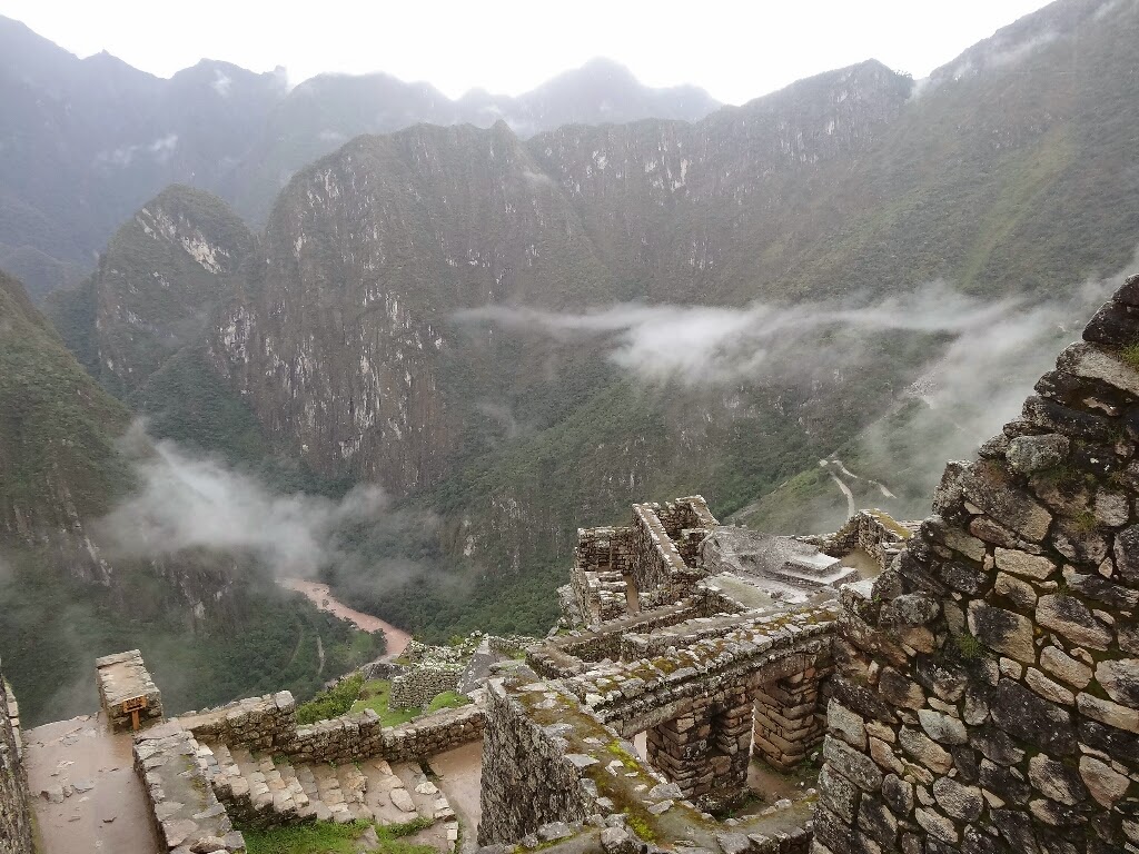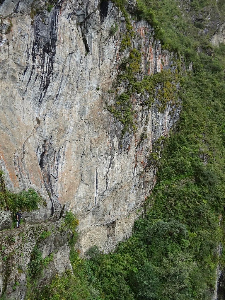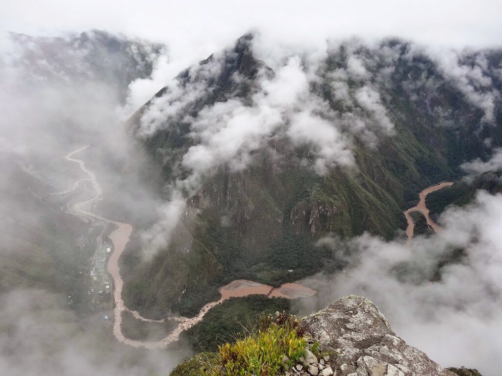 Cette balade est très jolie et sympathique, elle suit le rio Urubamba qui forme un méandre et des rapides impressionnants autour du massif sur lequel est perché la cité du Machu Picchu, on en aperçoit quelques terrasses et des morceaux de murs depuis la vallée.