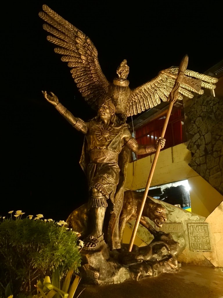 L'inca avec le serpent, le puma et le condor, représentant respectivement le passé, le présent et le futur, mais aussi sous terre, sur terre, dans le ciel.