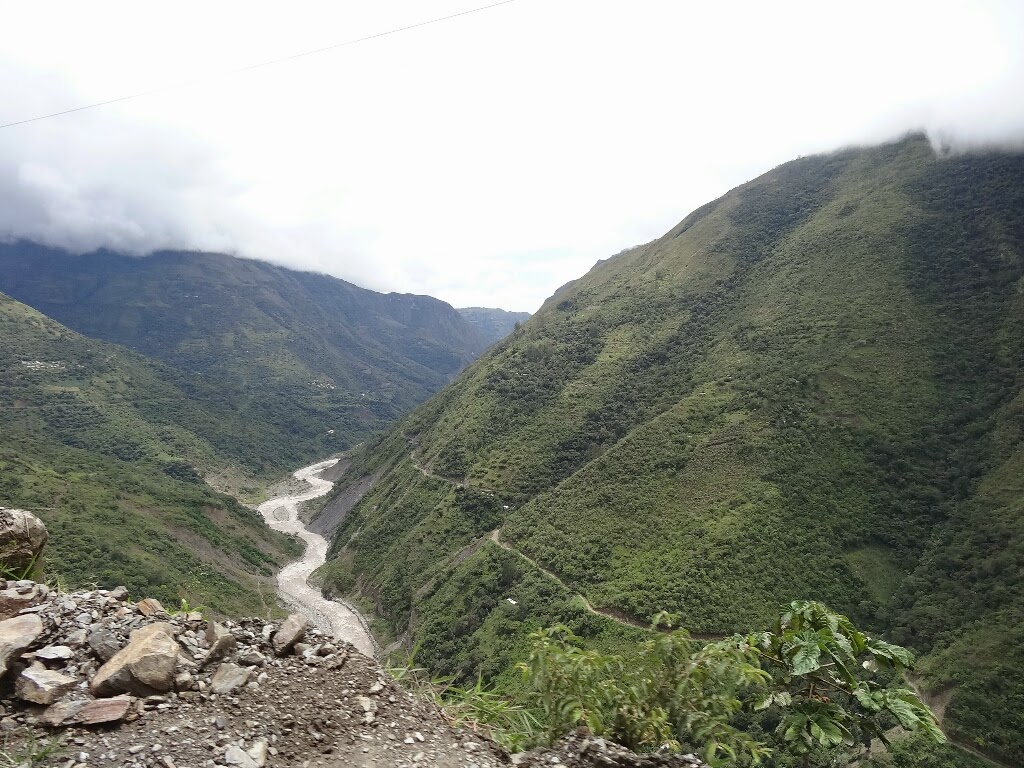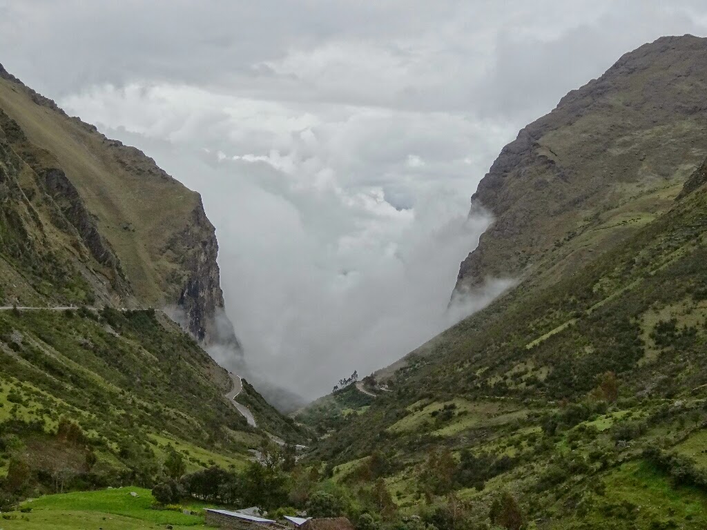 Normalement, la voie classique à emprunter pour se rendre au Machu Picchu est le train qui part de Cusco en passant par Ollantaytambo puis par la vallée du rio Urubamba jusqu'à Aguas Calientes, petit village au pied du Machu. Pour des raisons économiques nous choisissons un autre chemin, celui des routards d'aujourd'hui. Nous partons de Cusco en "collectivo" (genre de taxi partagé par les quatres passagers), il est 7h du matin. Nous roulons environ 4h, empruntons la vallée sacrée, passons un col à 4350m d'altitude pour redescendre sur le village de Santa Maria qui se trouve à 1125m. Le paysage est très beau si le temps est dégagé.