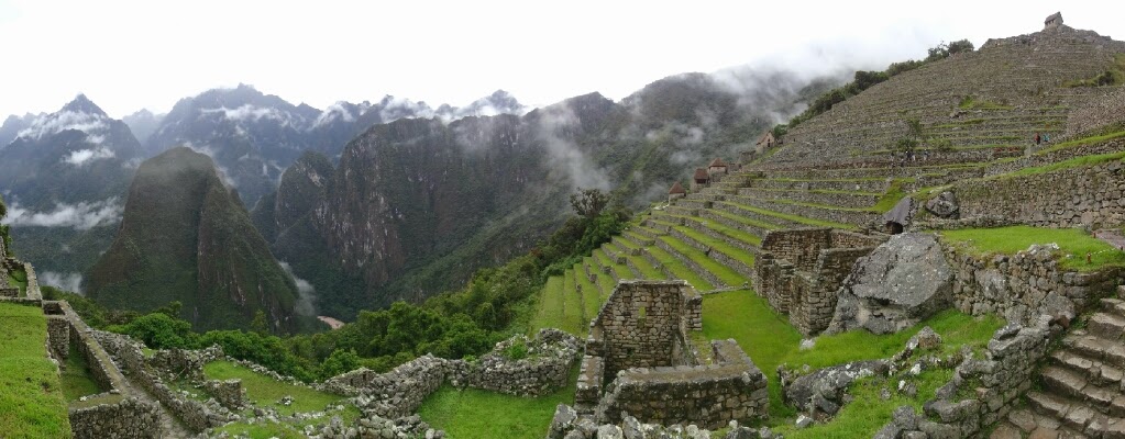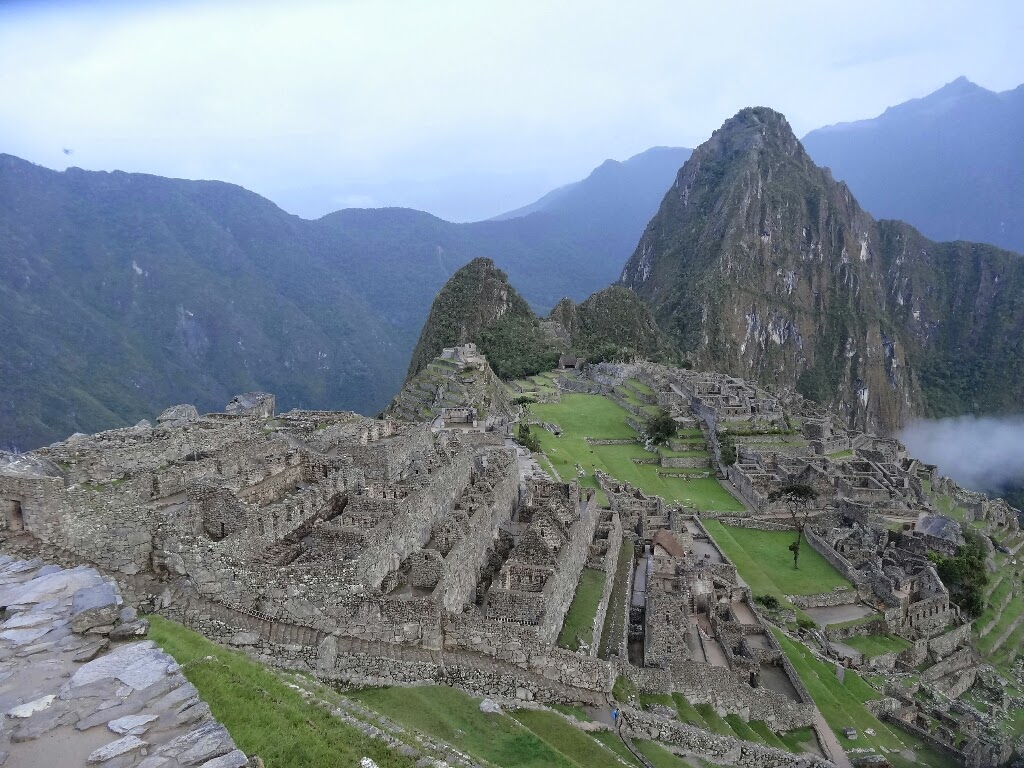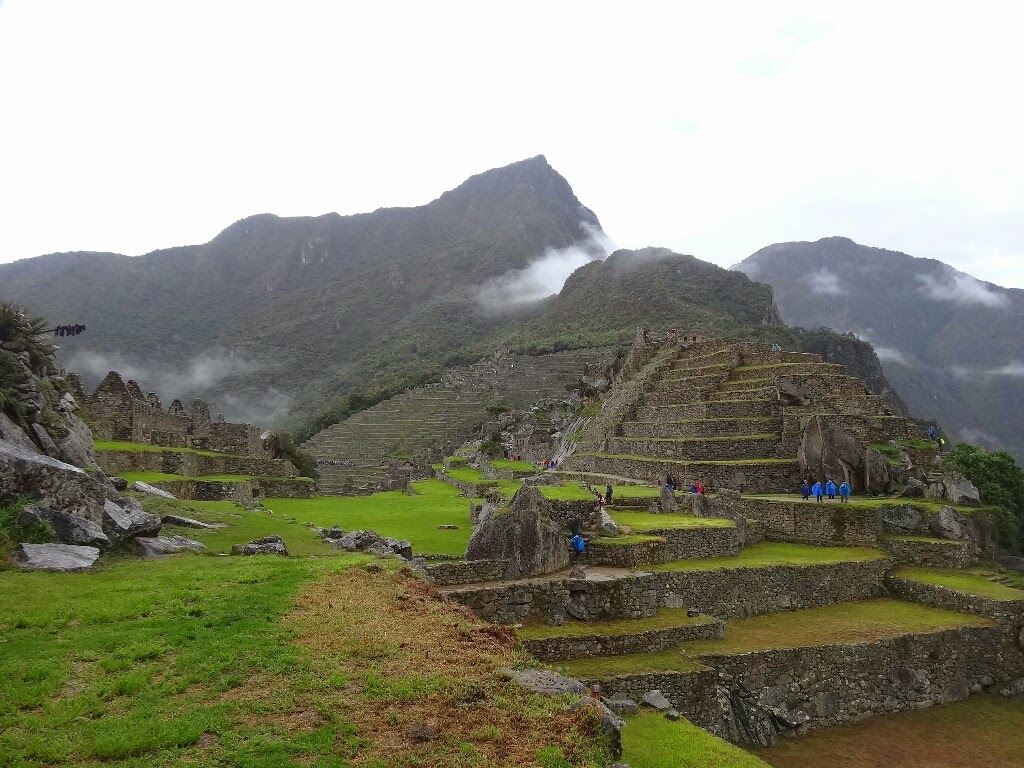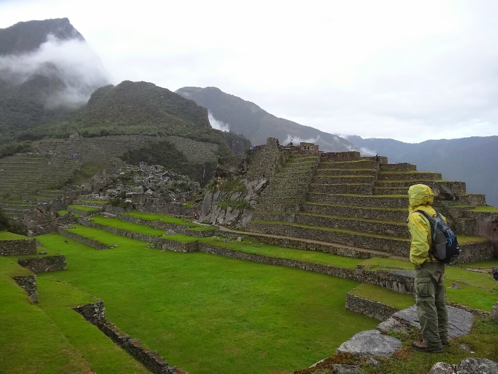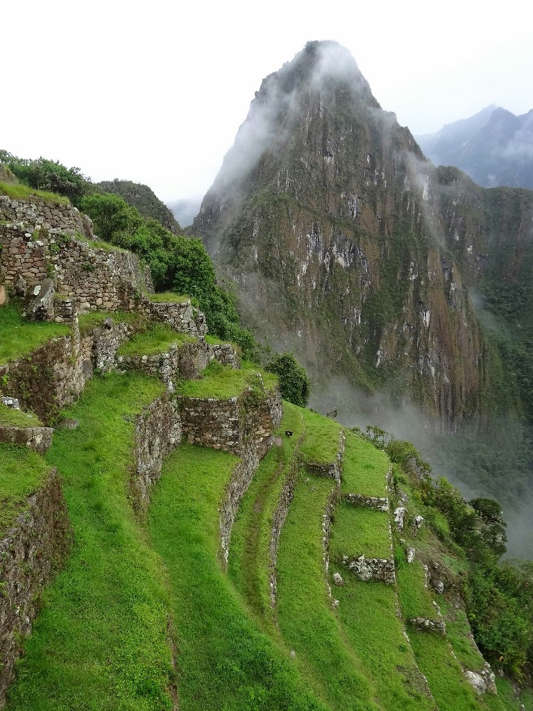 L'avantage d'entrer sur le site en premier est de pouvoir découvrir le Machu Picchu sans personne au milieu pour gâcher la vue, les gens en ponchos plastiques multicolores au milieu des ruines ce n'est pas très esthétique. Le point de vue que l'on a en rentrant depuis les terrasses agricoles est vraiment magnifique avec en fond le Wayna Picchu, cette montagne en pain de sucre, sur laquelle les Incas ont construit un petit temple de la lune.