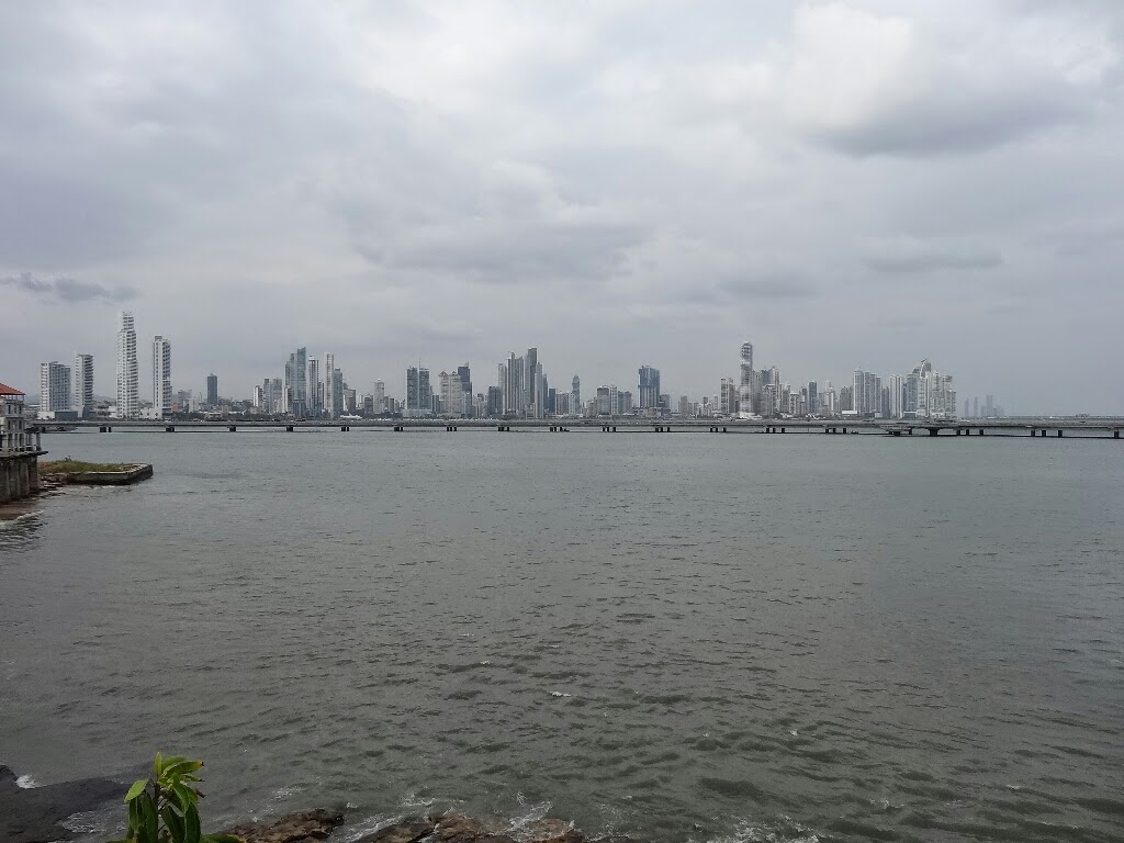 Une promenade le long de l'océan donne une vue sur l'entrée du canal et sur le quartier moderne de Panama avec ces innombrables grattes-ciel.