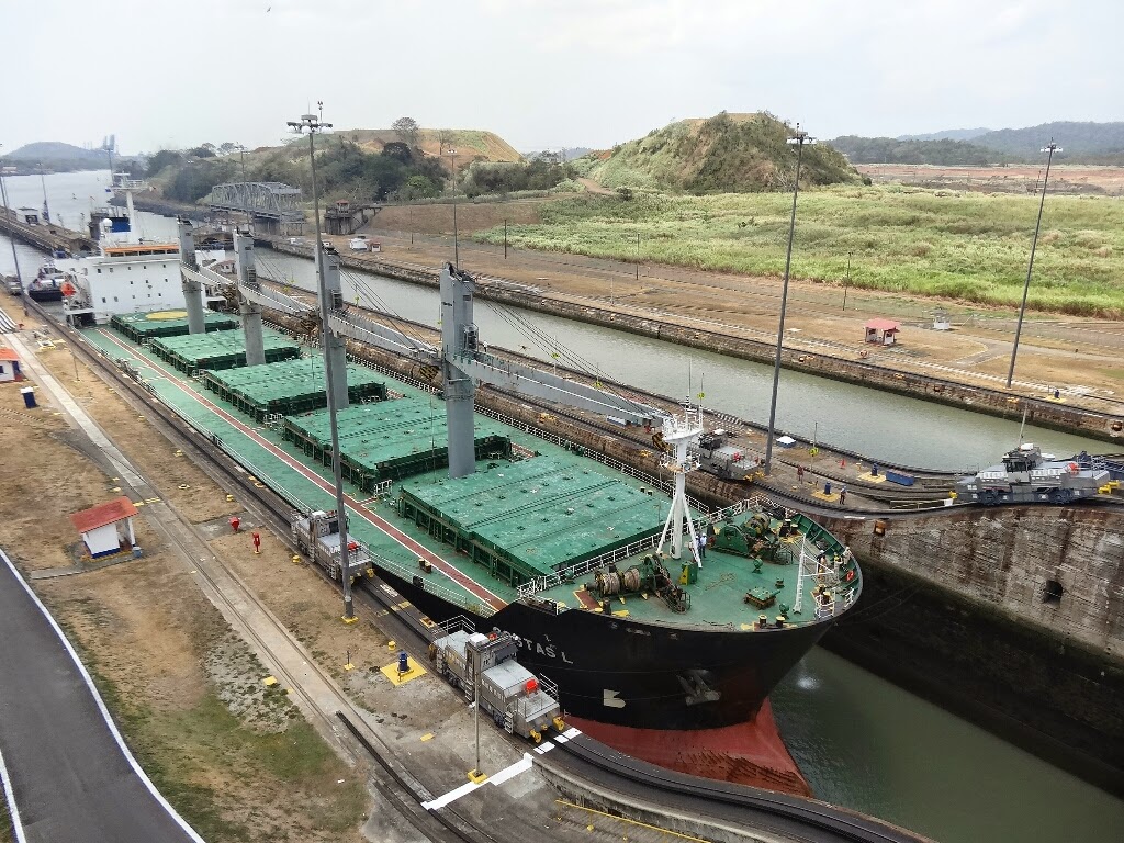 Nous arrivons juste à temps pour voir passer le dernier bateau de la matinée. Ce bateau paye 65 000 dollars pour passer, en moyenne un batiment paye 30 000$, ça dépend du type de bateau et de sa taille.