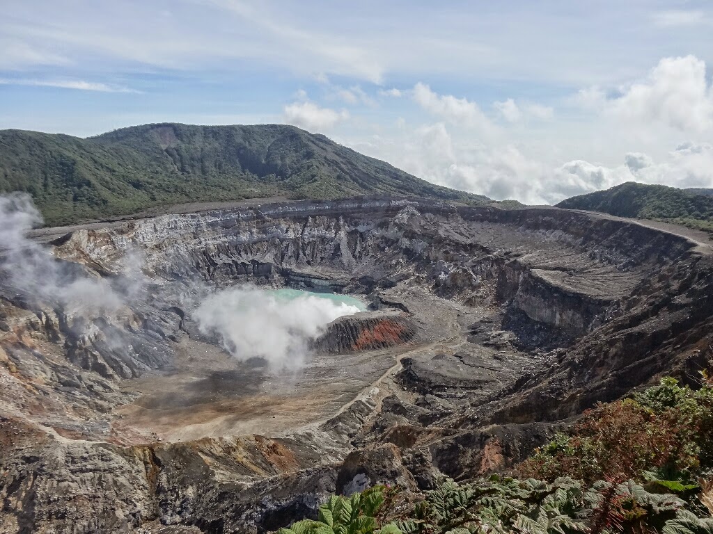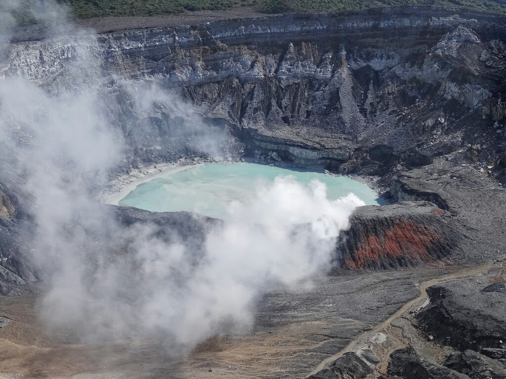 Ce volcan, un cône très empâté que l'on confond facilement avec un simple relief dans le paysage, culmine à 2704m d'altitude. Le dernier épisode éruptif majeur date du début des années 50, il a laissé un cratère profond de 300m et large de 1,3km. Au fond on peut voir un lac bleu turquoise, et des fumerolles, mélange de gaz soufré et de vapeur d'eau, formant un gros nuage blanc. Malheureusement, au grand désarrois de Boris, les visiteurs sont canalisés vers un seul point de vue et il est interdit de descendre dans le cratère, ce qui permettrait de mieux apprécier cette force de la nature. Le paysage est tout de même spectaculaire et on a parfois droit à la petite odeur d'œuf pourri si caractéristique.