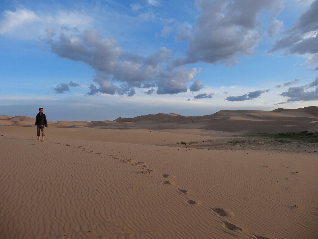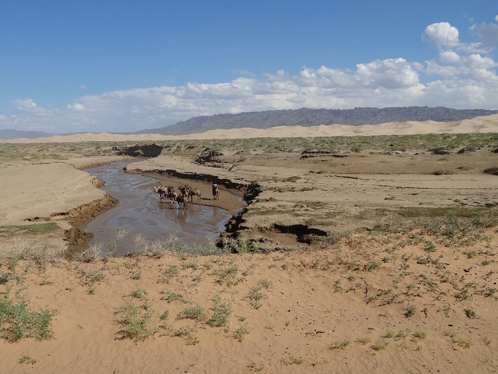 Le 4ème jour nos atteignons donc le pied des dunes où nous resterons deux nuits. En arrivant, nous avons droit à l'accueil de la famille mongole qui vie là. Ils nous servent du lait de chèvre chaud, des biscuits, du yaourt, tout est très bon. Cette famille élève des chèvres, des moutons et des chameaux.