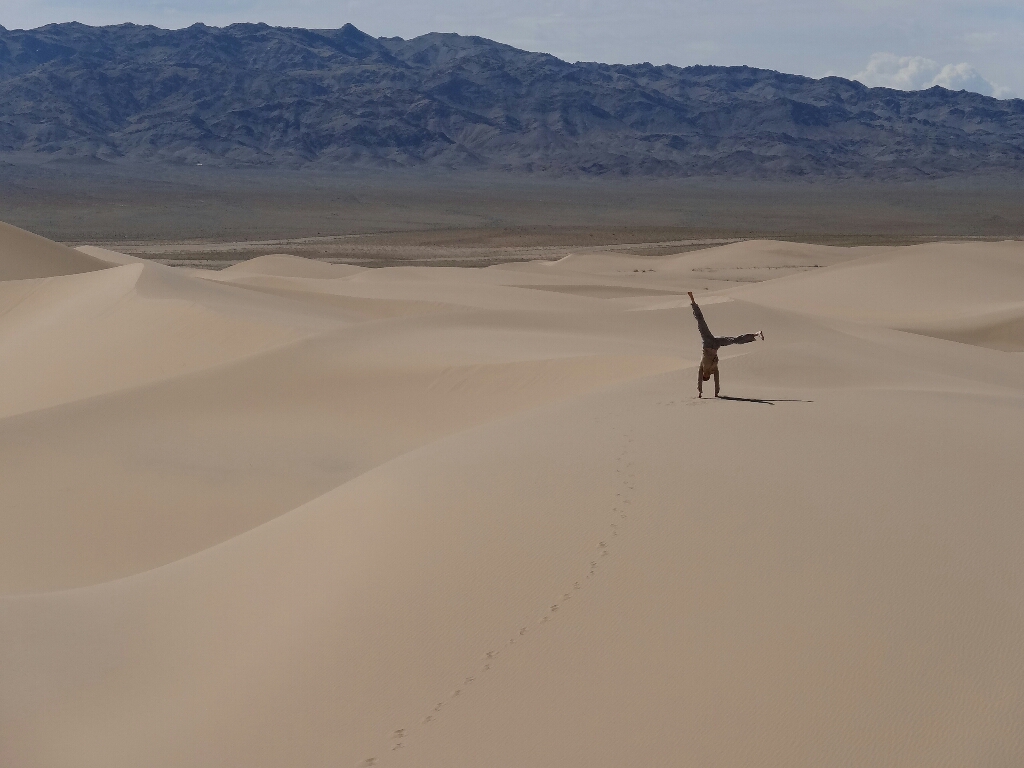 Après ça nous sommes tous motivés pour aller voir les dunes qui ne sont plus très loin, en plus c'est bientôt l'heure du coucher de soleil.
