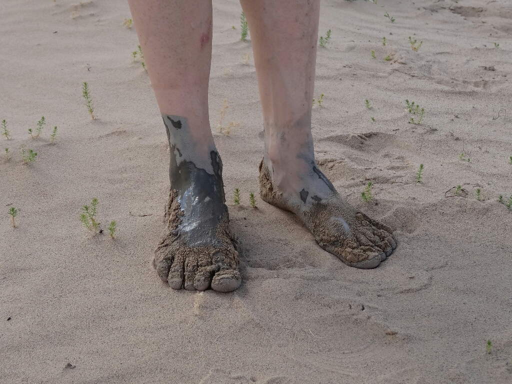 Nous voulons aller un peu plus loin vers un petit lac repéré d'en haut, les chauffeurs ne veulent pas nous y amener (je crois qu'ils ont peur de salir leur van) alors on y va à pied. Le lac est en fait une flaque boueuse. Voyons le bon coté des choses, c'est un excellent masque de boue pour les pieds, en Europe certains payent très cher pour ça.