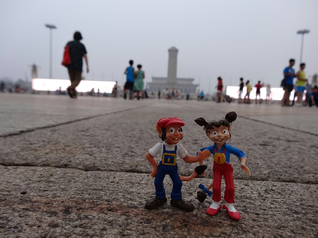 Certain mouvements de foule sont assez stressant, par exemple, sur la place Tian'anmen, Tom et Lucie sortaient du métro quand 4 gouttes se sont misent à tomber. Malgré qu'ils aient tous un parapluie, des centaines de touristes se sont précipités à l'abri dans l'entrée du métro. Devant le tsunami chinois, les Minipouss ont préféré vite sortir et se mouiller un peu...