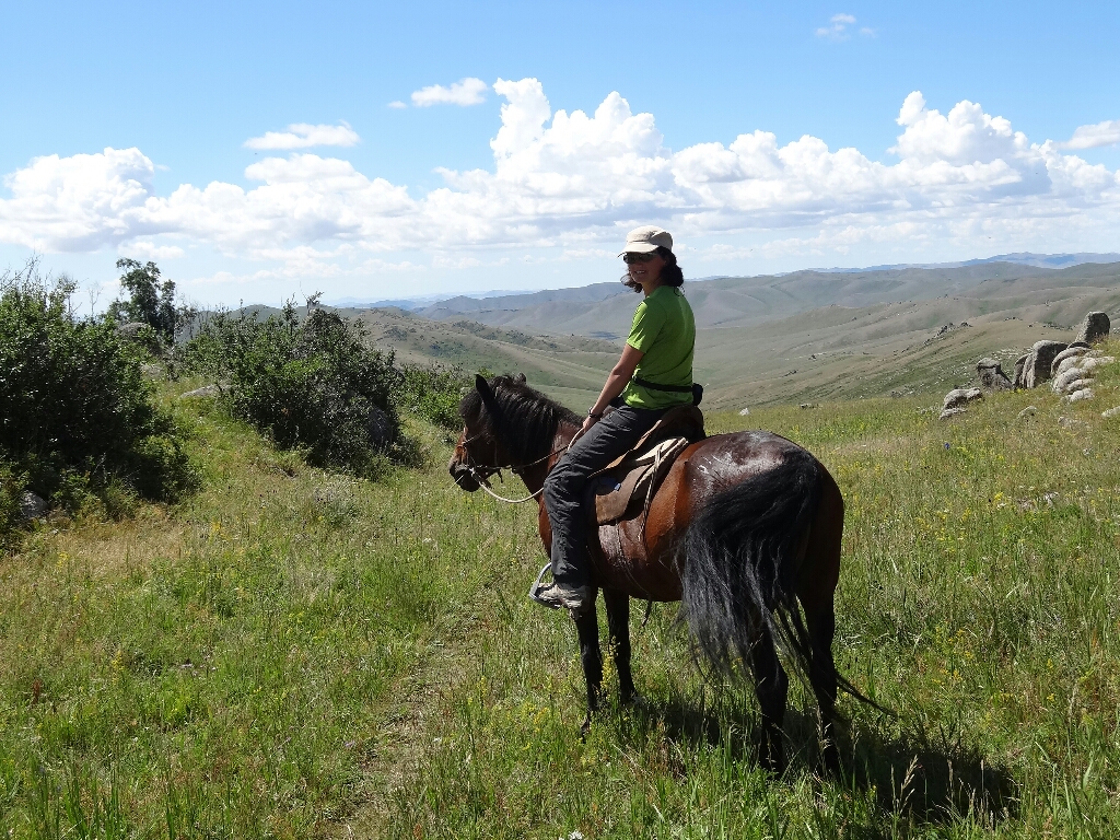 Le lendemain, il y a des chevaux mais pas pour les sacs à dos. La manager s'arrange pour qu'un homme à moto nous les amène, elle nous dit qu'il sera au camp à notre arrivée. On a toujours un peu de mal à laisser nos sacs à des inconnus, mais ici on a confiance. En chemin nous galopons dans la steppe, passons un magnifique col boisé et apercevons des marmottes.