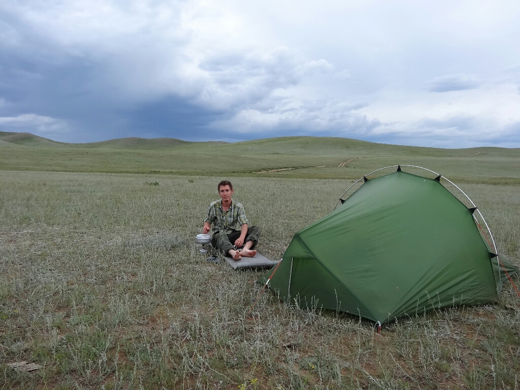 Vendredi 26, nous embarquons dans un van russe. Il part à l'heure mais on va s'arrêter souvent pour charger des courses et des gens. Nous finirons à 17 dans un van de 11 places, nous sommes les seuls touristes, les autres sont des travailleurs du camp de yourtes du parc, ils vont au boulot avec le camion du parc. Nous arriverons à l'entrée du parc à 21h, soit 4h pour faire 100km. Le chauffeur oubli de nous faire payer. Nous posons notre tente à l'extérieur du parc, c'est gratuit. Le séjour s'annonce économique.