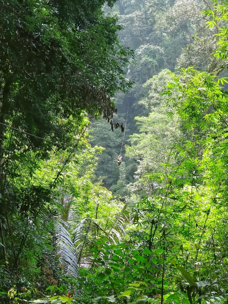Les deux jours suivants nous glissons sur de nombreuses tyroliennes toutes plus impressionnantes les unes que les autres avec des passages à plusieurs dizaines de mètres au-dessus des arbres et des paysages très beaux.