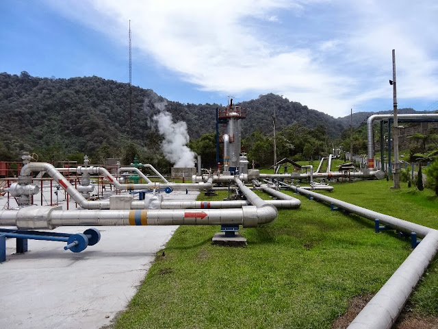 Puis nous arrivons dans un village où la chaleur du volcan est utilisée pour produire de l'électricité.