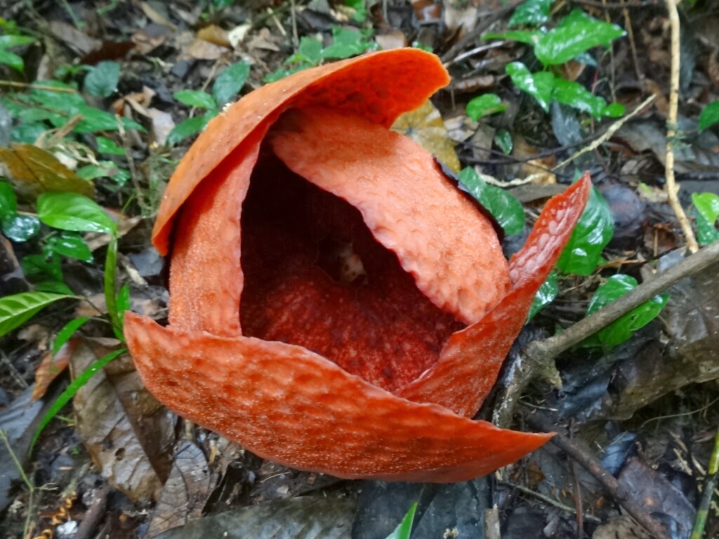 Tous les jours nous passons devant une raflesia, la plus grosse fleur du monde. Celle que nous observons n'est pas la plus grosse espèce, mais elle a déjà une belle taille. Nous avons la chance de pouvoir suivre l'évolution de son ouverture.