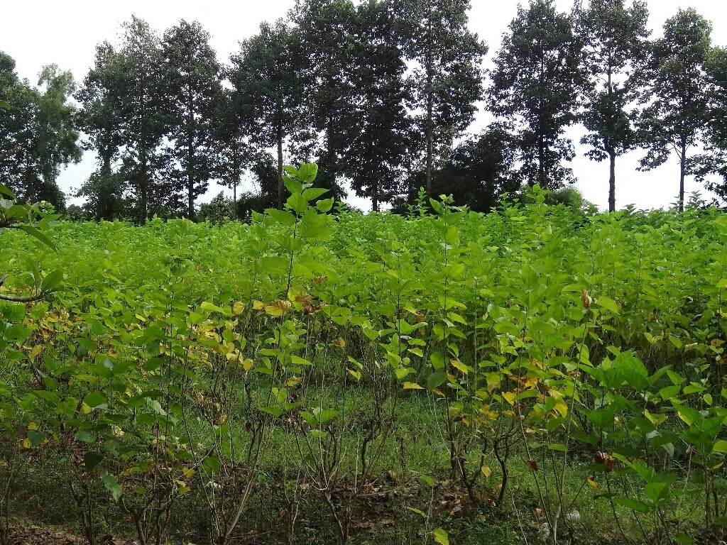 D'abord les vers sont nourris de feuilles de mûrier (ils ne mangent que ça). Les mûriers sont cultivés sur place en plein champ.