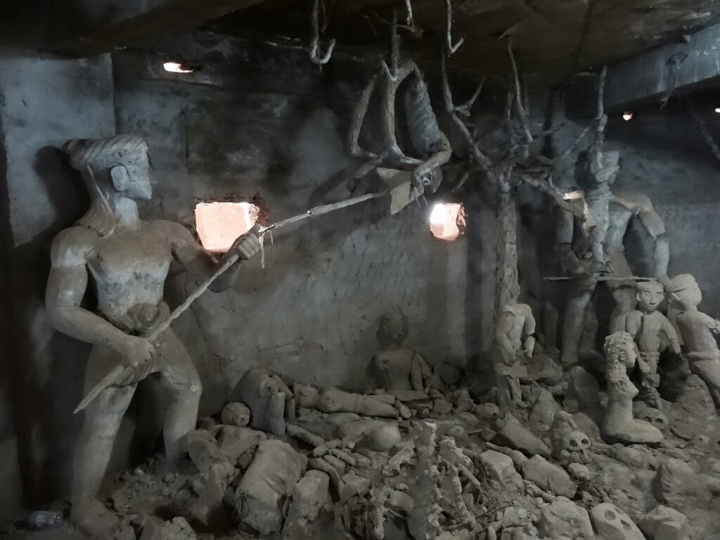 Nous pénétrons dans un des édifices en forme de citrouille. A l'intérieur il y a trois niveaux représentant l'enfer, la Terre et le paradis.