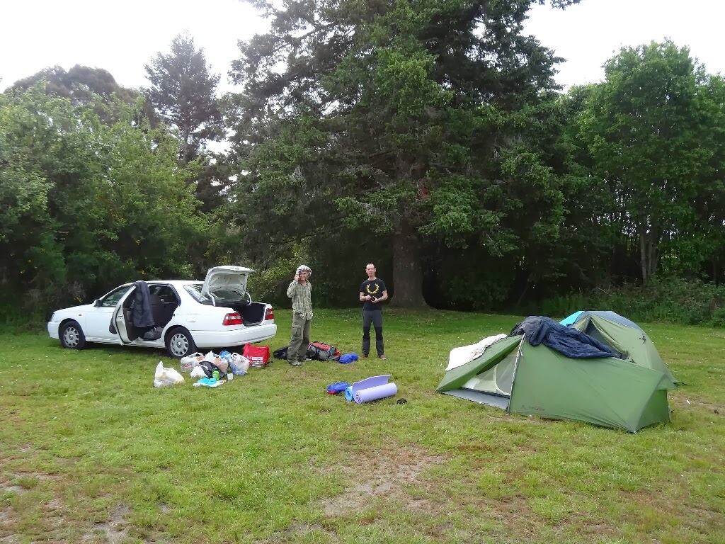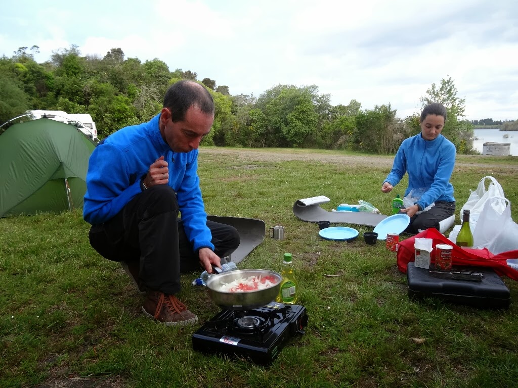 Le 17 novembre nous récupérons la voiture de location et partons en direction du Sud. On passe notre première nuit sous la tente sur une aire de camping gérée par le DOC (Departement Of Conservation). Le DOC gère de nombreuses aires de camping en Nouvelle-Zélande et propose différents niveaux de confort : Basic, juste une aire plane, des toilettes et un point d'eau, Standard avec en plus de l'eau courante, un abris et des tables, Scenic avec douche, coin cuisine et généralement une superbe vue, enfin il y a les campings Serviced avec tout le confort. Les Basics sont gratuits, pour les Standards c'est 6NZD la nuit par personne, pour les Scenics c'est en général 10NZD et pour la dernière catégorie c'est 15NZD. On passe la première nuit dans un Standard non loin de la ville de Rotorua, au bord du lac Rerewhakaaitu (pas facile à dire du premier coup).