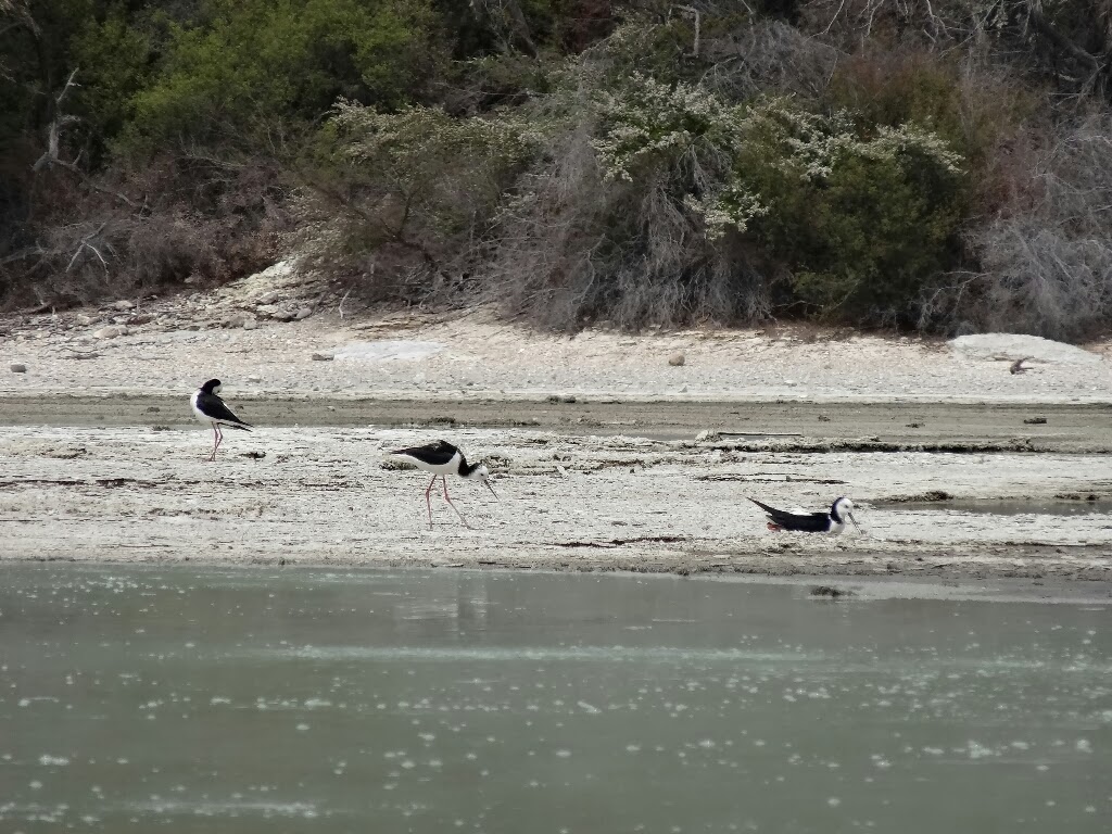 La "poêle à frire" (juste parce que sa forme ressemble à une poêle) et les oiseaux (The pied stilt) qui s'y nourrissent.