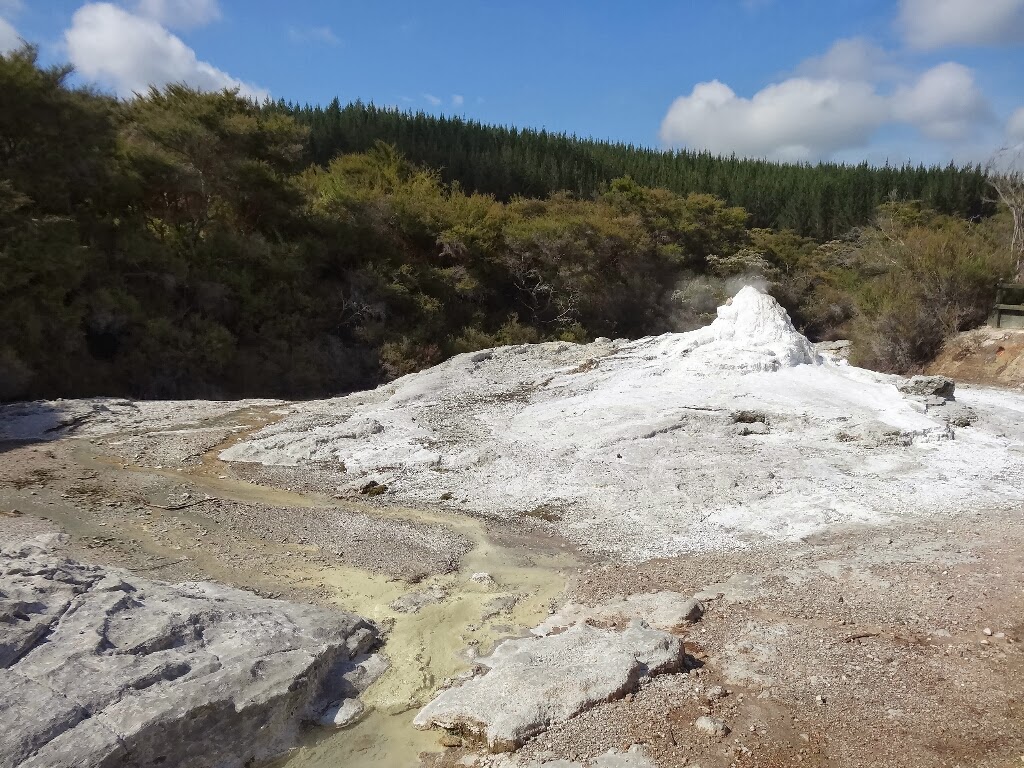 A notre arrivée nous allons voir le geyser de Lady Knox qui est déclenché à heure fixe, artificiellement grâce à une solution savonneuse.