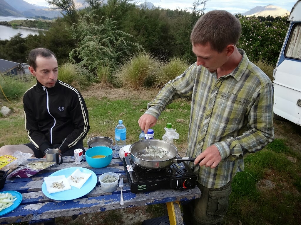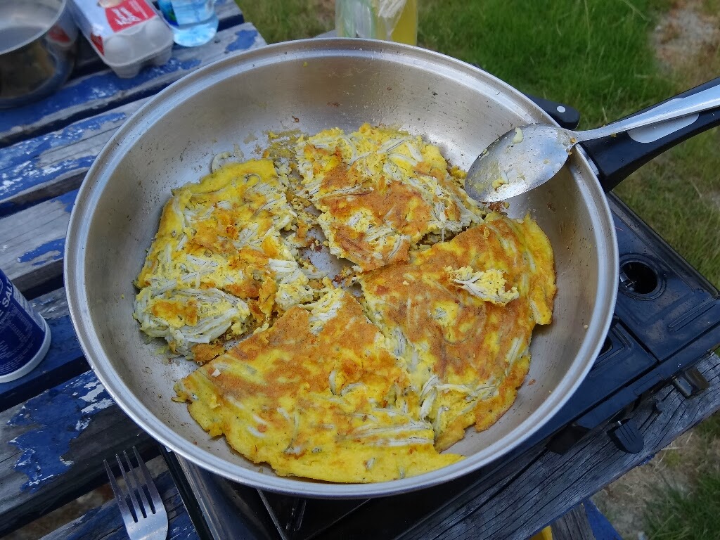 Pour le dîner nous cuisinons la blanchaille : d'abord en friture puis en omelette. Encore un bon repas !