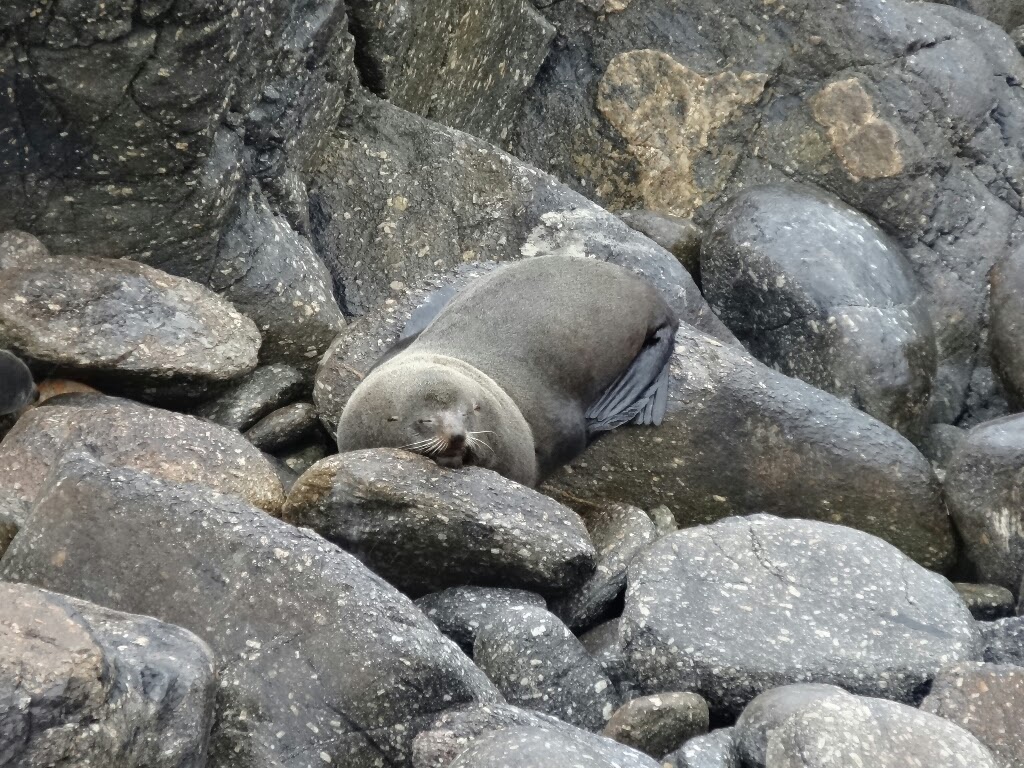 Puis nous faisons un deuxième stop un peu plus au Sud pour observer des otaries à fourrure. C'est la première fois qu'on en voit en Nouvelle Zélande, on ne le sait pas encore, mais on en verra souvent par la suite.