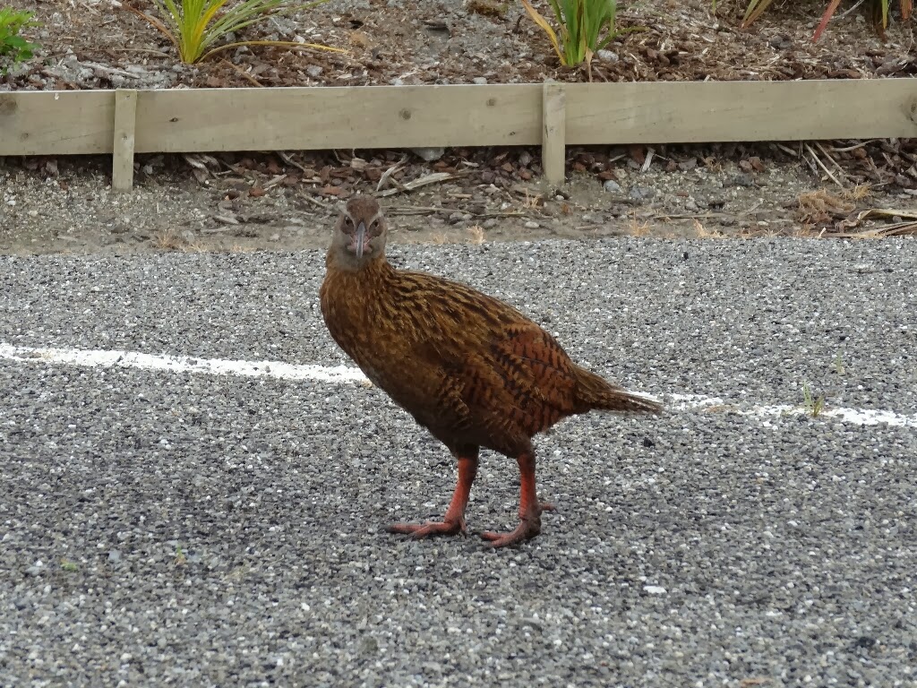 Depuis le lac Rotoiti nous rejoingnons la côte Ouest. La journée est pluvieuse. En route nous faisons une première halte au cap Foulwind. Sur le parking nous sommes accueilli par un drôle d'oiseau, un genre de poule préhistorique, le Weka.