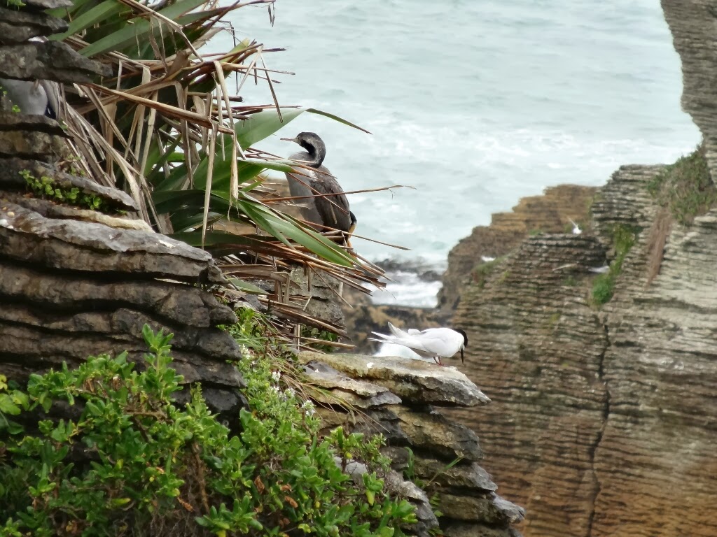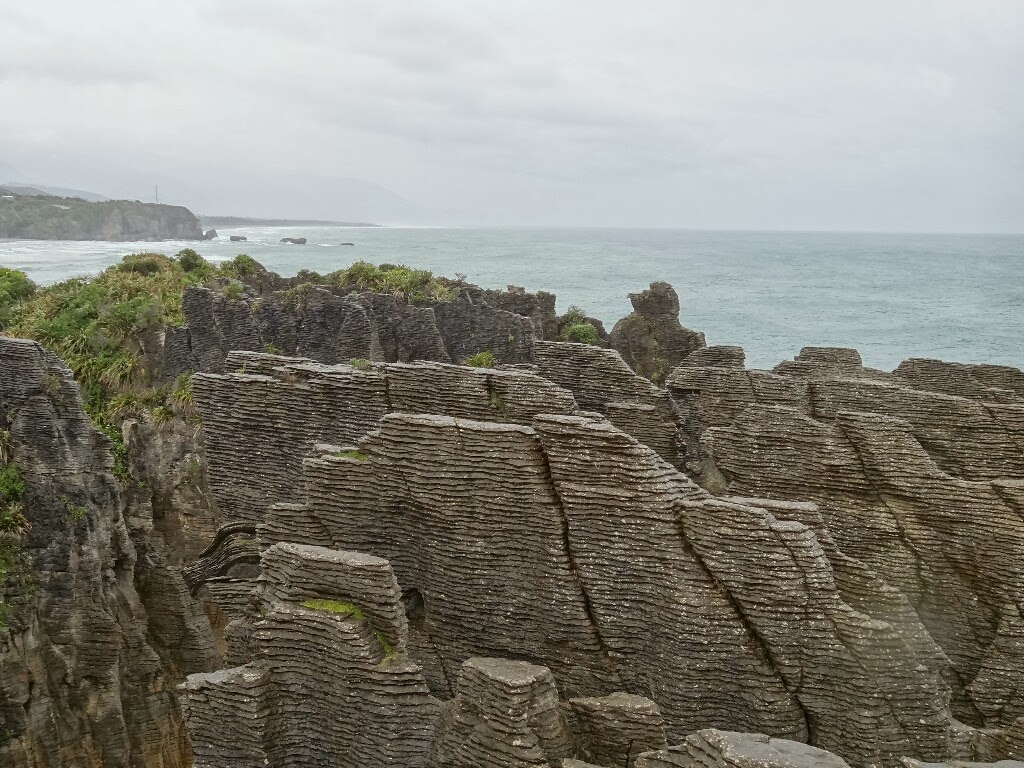 Un peu plus au Sud on s'arrête à Punakaiki pour faire la balade de "Panecake Rocks", formation géologique particulière fouettée par les vagues. De là à y voir un empilement de panecakes, ils faut être anglais et peut-être avoir forcé sur la bière.