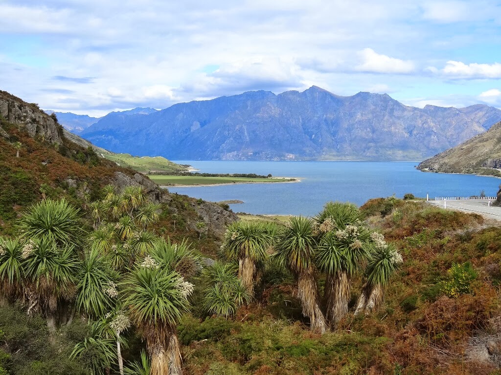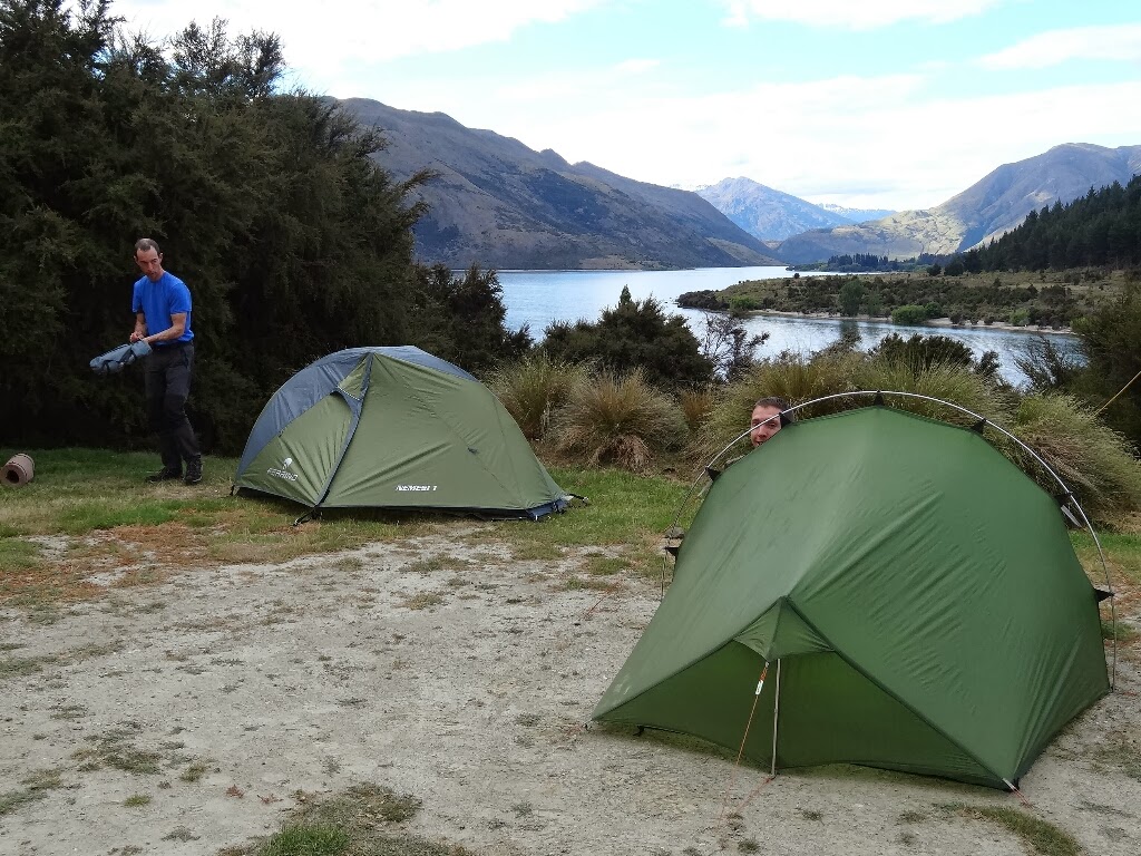 En passant du versant Ouest au versant Est des Alpes le temps s'améliore. Nos découvrons de magnifiques et gigantesques lacs glaciaires. Nous posons nos tentes dans un camping de Wanaka avec une belle vue sur le lac du même nom.