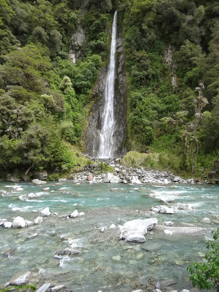 Le temps ne permettant pas de faire de randonnée, nous reprenons la route vers le Sud direction Haast. En chemin on s'arrête acheter de la blanchaille, jeunes alevins dont la pêche est traditionnelle dans cette région. Puis nous bifurquons vers le Sud-Est en direction de Wanaka. Sur cette route nous faisons plusieurs arrêts pour voir cascades, rivières et torrents aux eaux cristallines (ça coule de source !).