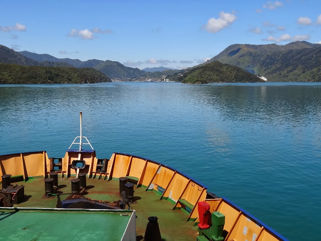 Le lendemain, 23 novembre, nous prenons le ferry direction Picton sur l'île du Sud. La traversée se fait en 3h30 et passe par les "sounds" du nord de l'île du Sud. Ce sont des bras de mer qui s'enfoncent profondément dans une côte très découpée.