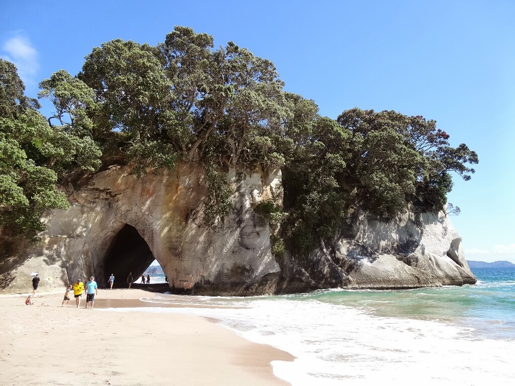 Nous continuons notre route vers le Nord en suivant la côte sur une piste bordée de Puhutukawa, ou "christmas tree" car ils fleurissent à Noël. Ces vieux arbres ont des formes extraordinaires, ils se tordent à cause du vent, se cassent et repartent de plus belle.