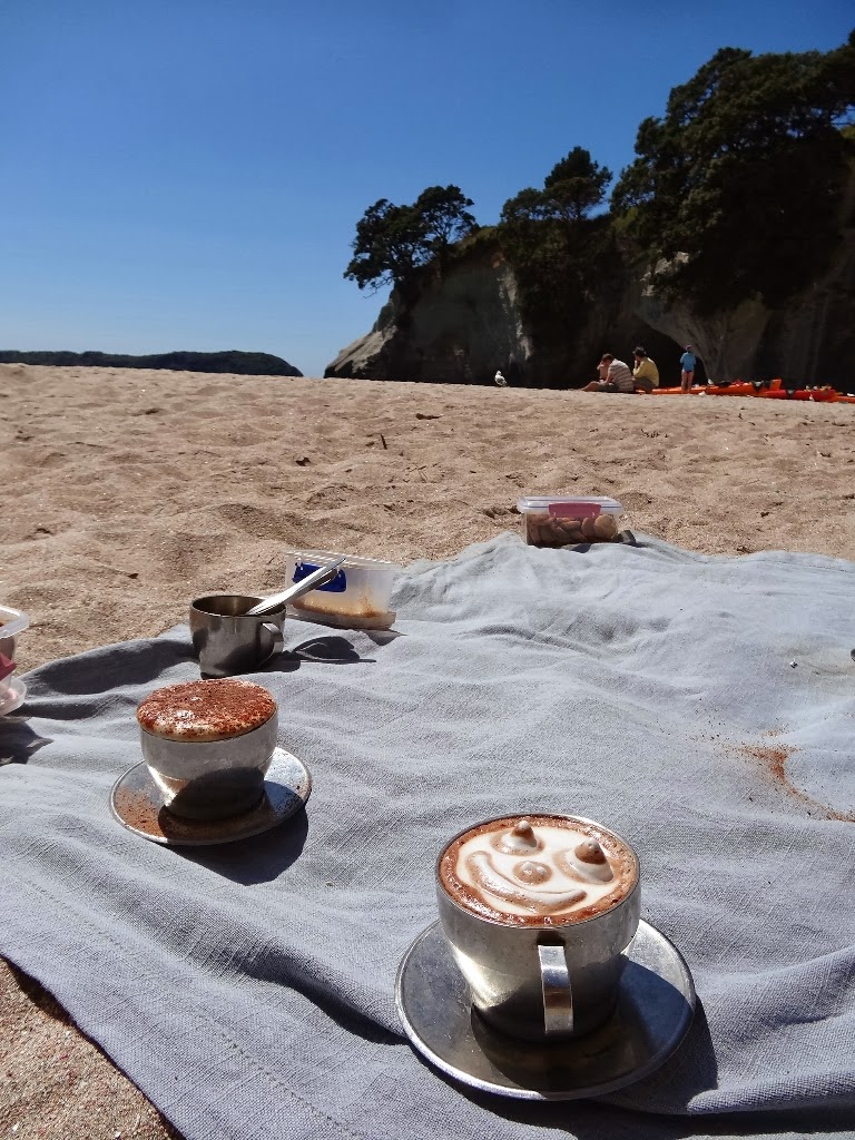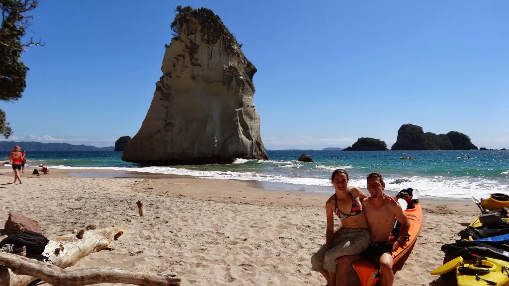 A Hahei nous réservons pour le lendemain une sortie en kayak de mer. Nous passons notre fin d'après-midi sur la très belle plage qui se trouve à quelques pas de notre camping.