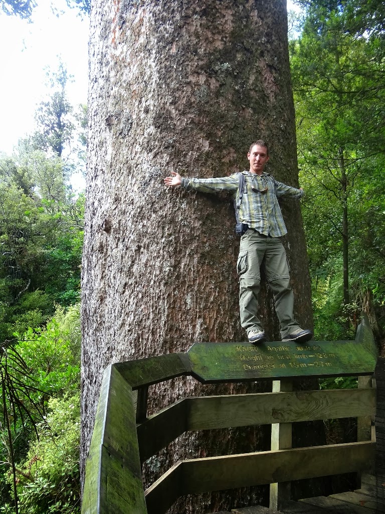 Nous faisons un premier arrêt pour aller voir un kaori, l'espèce d'arbre la plus grosse de Nouvelle-Zélande. Nous traversons une forêt avec des fougères arborescentes immenses puis nous apercevons ce fameux kaori, il est âgé de 600 ans.