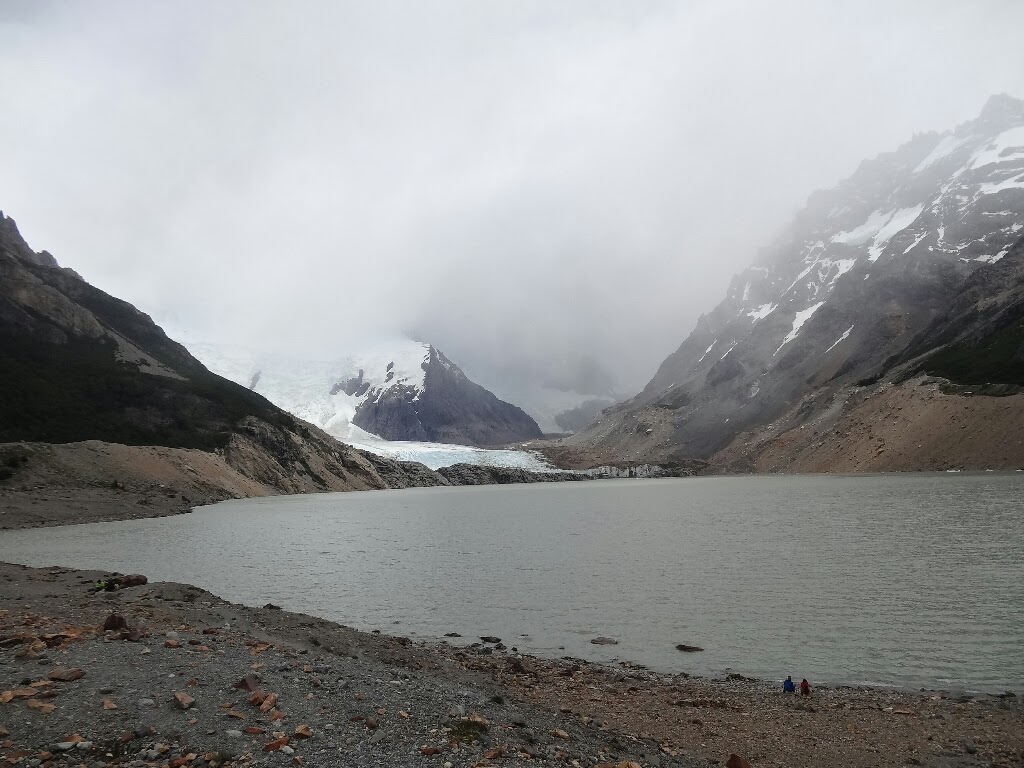 Après l'ascension de la petite moraine, le "lago Torre" apparait mais la superbe vue promise sur le "Cerro Torre" est complètement bouchée, dommage.