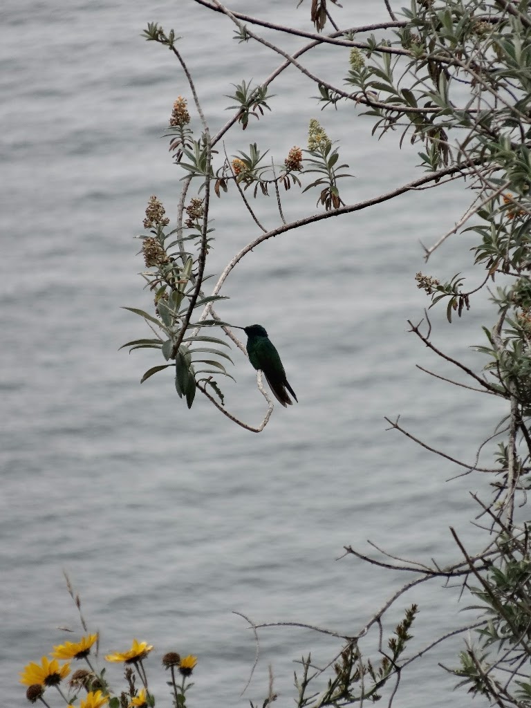 Le lendemain, après le petit déjeuner, nous partons pour l'île de Taquile. Nous marchons une petite heure sur un chemin bordé de fleurs à travers les terrasses. On croise parfois de jolis colibris.