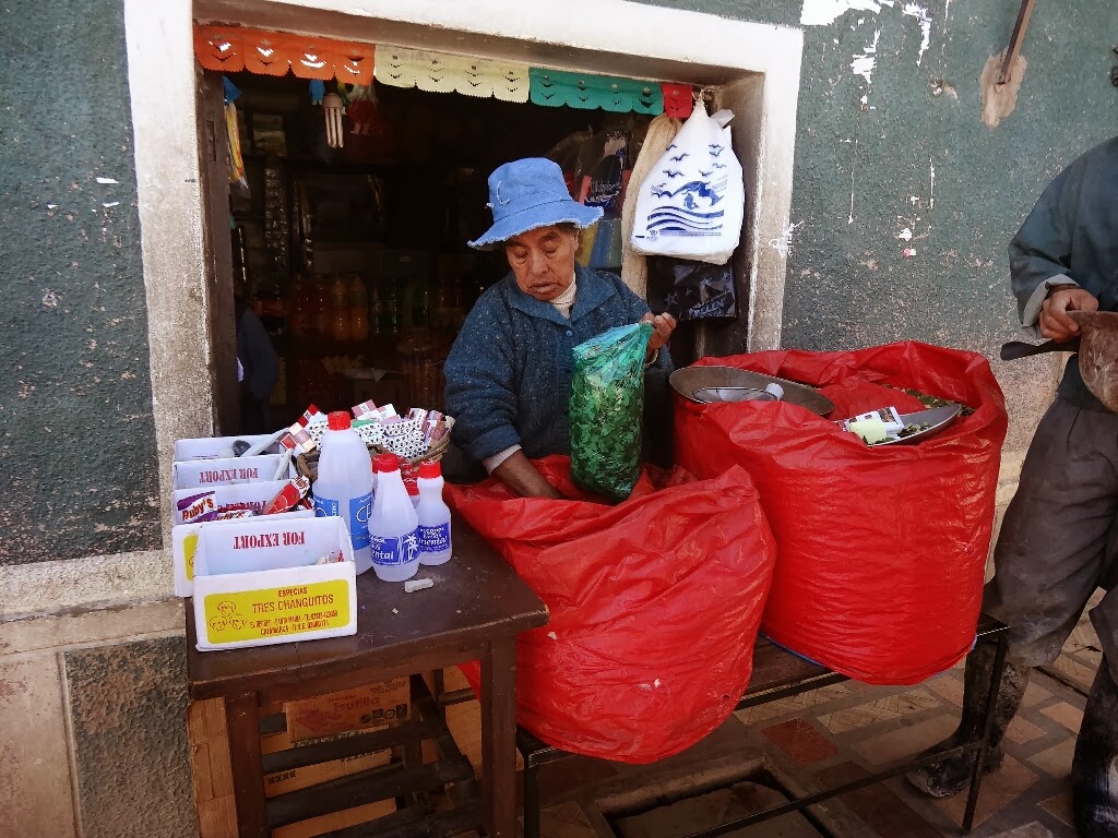 Puis on passe à un magasin de mineurs où l'on trouve tout le nécessaire pour travailler sous terre. On achète une boisson, de l'huile pour la foreuse manuelle, de la dynamite, des feuilles de coca et un cahier et des crayons. Tout cela servira de petits cadeaux aux mineurs rencontrés, ou à leurs enfants (sauf pour la dynamite bien sûr !).