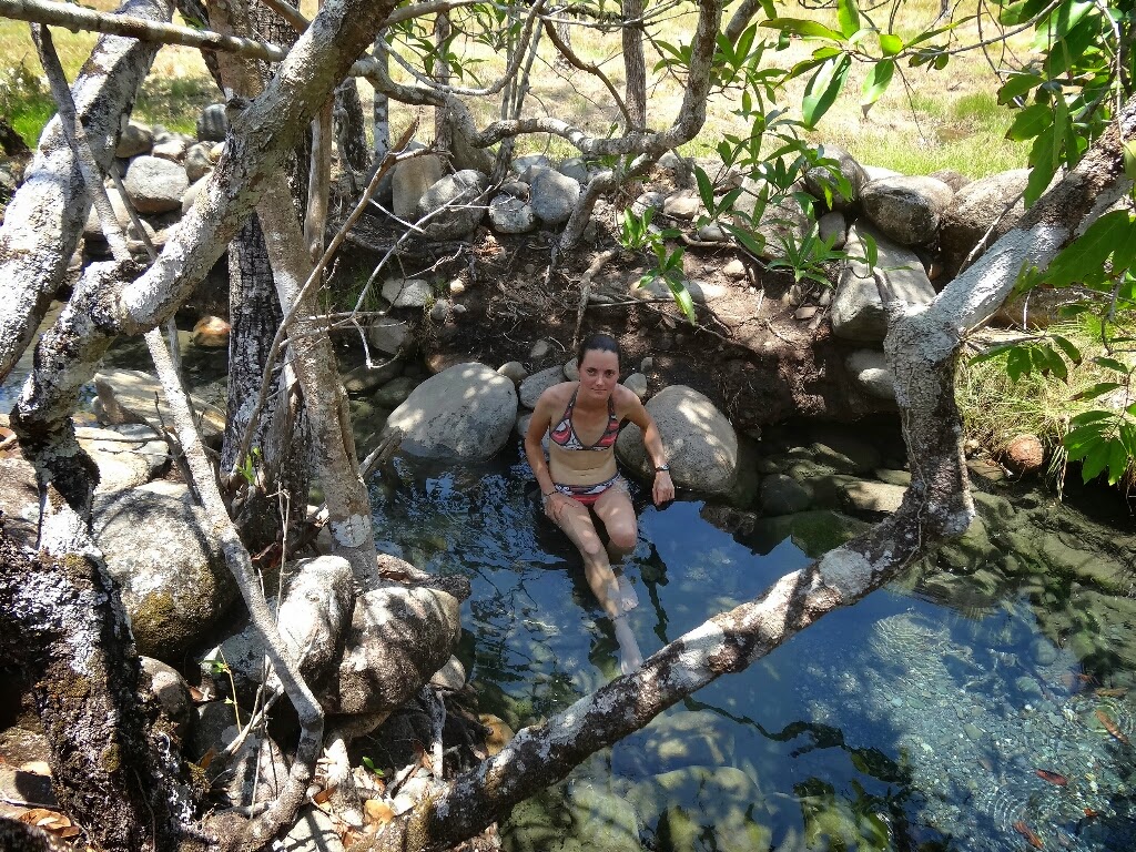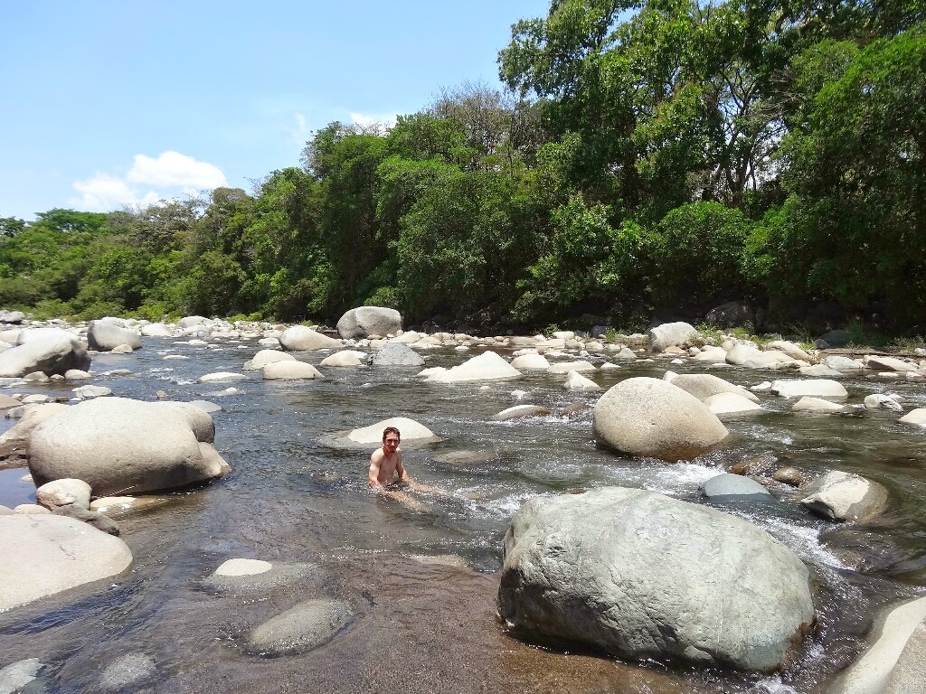 La journée du lendemain est plus relax. Nous prenons un bus jusqu'au village de Caldera, depuis lequel nous marchons 45min jusqu'à des sources d'eau chaude. Le site est joli mais l'eau bien trop chaude dans le contexte actuel. Avec une température extérieure d'environ 35°C, on a plutôt envie de fraîcheur. Alors après un petit bain chaud rapide (il parait que cette eau est bonne pour la santé), on se jette dans la belle rivière qui se trouve juste à côté, la température de l'eau est parfaite et les remous fond office de jacuzzi et massages.