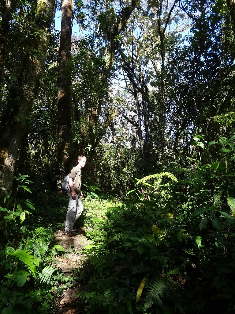 Il est possible ensuite de descendre de l'autre côté vers le village de Cerro Punto et de prendre des bus pour revenir, mais il y en a pour 3h de transport. Au poste de garde, on rencontre un gars qui, la veille, a entendu des cris effrayés de deux filles, puis un grand bruit de chute, et ensuite a vu trois types sur le sentier. Cela explique la présence aujourd'hui de nombreux flics ou sauveteurs sur le sentier à la recherche des filles. Après le pique-nique nous redescendons par le même chemin, un peu troublé par cette histoire et la possibilité que les deux hollandaises aient fait une mauvaise rencontre dans le secteur. En effet, il est presque impossible de se perdre sur ces sentiers bien marqués, encore moins durant 4 jours...