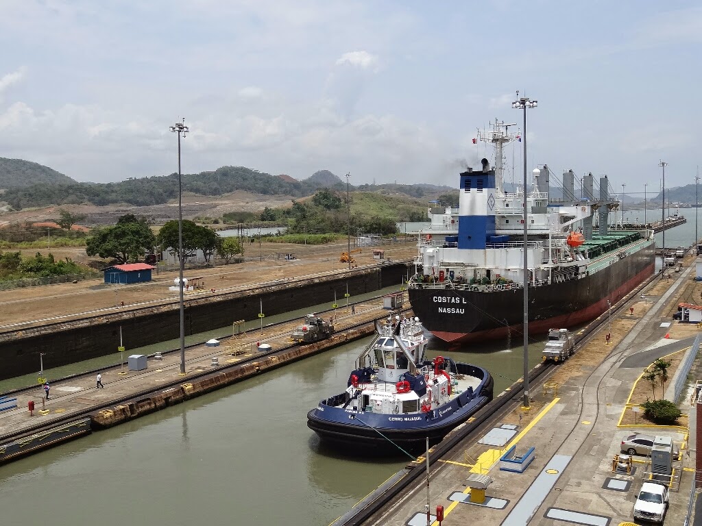 Ici nous sommes côté Pacifique, les bateaux doivent d'abord passer deux écluses qui les fond s'élever d'environ 20 m. Un peu plus loin il y a une écluse de plus, les navires parcourent ensuite 80km jusqu'au grand lac artificiel de Gatun qui alimente en eau les écluses. Puis les écluses de Gatun fond redescendre les bateaux jusqu'à la mer des Caraïbes pour rejoindre l'océan Atlantique.