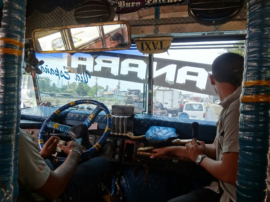 A l'aéroport, comme à notre habitude, nous cherchons quelques informations pour se rendre en ville sans prendre un taxi. Au bureau touristique, on nous dit qu'il existe bien un bus mais qu'il faut une carte qui n'est vendue qu'en centre-ville, on est donc obligé de prendre un taxi. Peut-être que l'expérience du voyage commence à se faire sentir, on est sûr que le personnel du bureau est de mèche pour faire le business des chauffeurs de taxi. On sort de l'aéroport, il fait une chaleur étouffante, on a plus l'habitude. En chemin le prix du taxi diminue mais on s'entête, il doit bien y avoir un bus, tout le monde n'a pas les moyens de se payer le taxi. On trouve finalement une personne qui nous confirme l'existence d'un bus et au même moment il s'arrête de l'autre côté de la route. C'est un bus de style bus scolaire américain, sauf que celui-là et tout bariolé au lieu d'être jaune. Il est bondé, on peine à rentrer à l'intérieur avec nos sacs-à-dos. Édith se retrouve à moitié sur le chauffeur et Boris est dans l'entrée, il doit descendre et remonter à chaque arrêt pour laisser passer les gens. Mais voilà, ça nous revient à 50 cents (le taxi c'est environ 50 fois plus cher après négociation !). Le volume de la musique ragga est poussé à fond, on ne s'entend même pas parler. L'atmosphère est bien différente de celle du Pérou où de la Bolivie, ici les filles s'habillent sexy et les gars n'ont aucune gène à les siffler, les mater et les brancher ouvertement. C'est une bonne entrée en matière, dans une chaude ambiance des caraïbes, bienvenue au Panama.