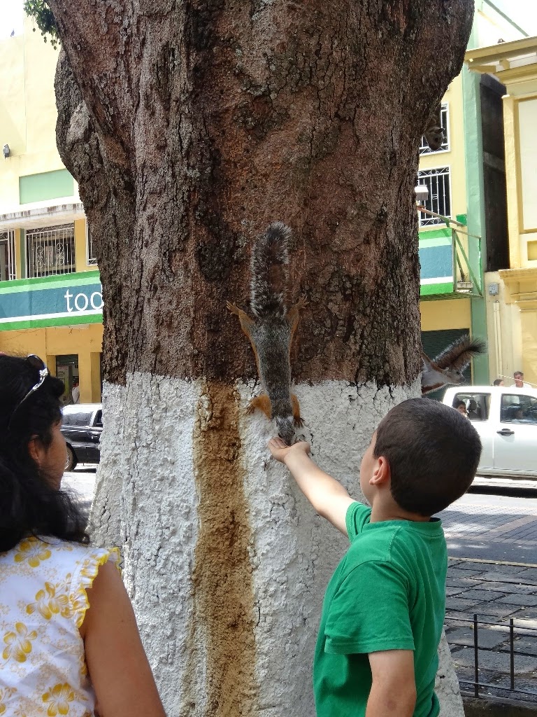 Le lendemain nous faisons un petit tour de Alajuela. Cette ville est la deuxième du pays. La place centrale est plutôt agréable, et on se dégote un super petit resto de poisson pour finir sur une bonne note. Les écureuils assurent le spectacle et divertissent petits et grands.
